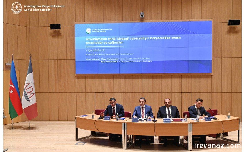 Դիվանագիտական ծառայության մարմինների ղեկավարների IX խորհրդակցության շրջանակներում կայացել է՝ դատական գործընթացների ռազմավարություններին նվիրված վահանակային քննարկում՝ «Ադրբեջանի արտաքին քաղաքականությունը ինքնիշխանության վերականգնումից հետո. առաջնահերթություններ և մարտահրավերներ» թեմայով։Ինչպես հայտնել են Արտաքին գործերի նախարարությունից, որպես հիմնական զեկուցողներ, հանդես են եկել արտաքին գործերի փոխնախարար Էլնուր Մամեդովը և գլխավոր դատախազի առաջին տեղակալ Էլչին Մամեդովը։