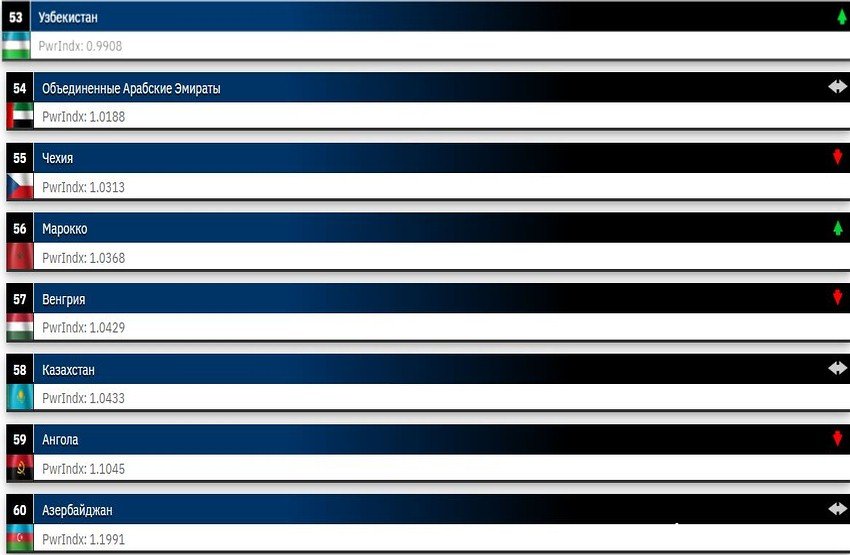 Ադրբեջանը զբաղեցնում է 60-րդ, Իրանը՝ 16-րդը, Վրաստանը՝ 95-րդը, Հայաստանը101-րդը: